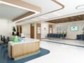 イスターカーテンのフラットでワイドなパネルデザインが、空間の広がりを強調します。ガラス面から自然光をふんだんに取り込むことで、明るく清潔感のある印象の演出に成功しました。