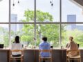 雨天時や風が強い日は折戸を閉めますが、ガラス面が広いため、閉めていても圧迫感がありません。そのため、顧客は雨に濡れることなく、ガラス越しに外の景色を楽しみながら食事を楽しめます。